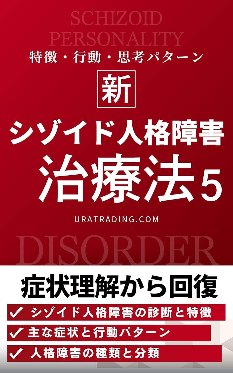 シゾイド人格障害の治療法:シゾイドパーソナリティ障害の症状理解から回復まで:人格障害の治療法シリーズ第5巻 2024年12月25日 この記事を書いた人:心理カウンセリング浦《浦光一》 0件のコメント シゾイド人格障害の治療法:シゾイドパーソナリティ障害の症状理解から回復まで:人格障害の治療法シリーズ第5巻